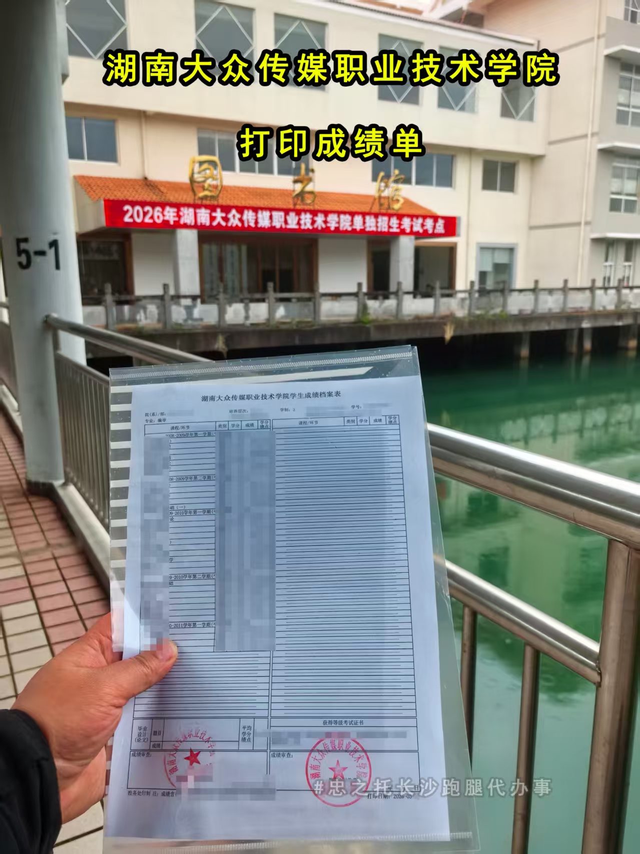 今年湖南大众传媒职业技术学院的成绩单办理流程已进行了调整,教务处不再直接出具成绩单,办理需要学院打印审核后才能由教务处盖章。流程虽然变了,但制度流程还算合理,本次业务顺利完成。